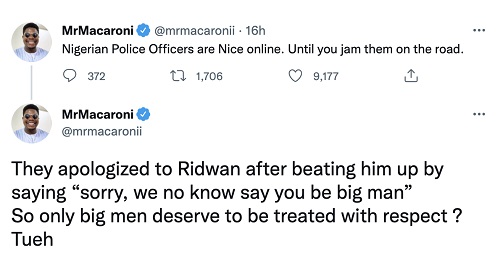 In a Twitter post, Macaroni revealed that the police officer are so nice on social media, but are not accommodating when you meet them in person.